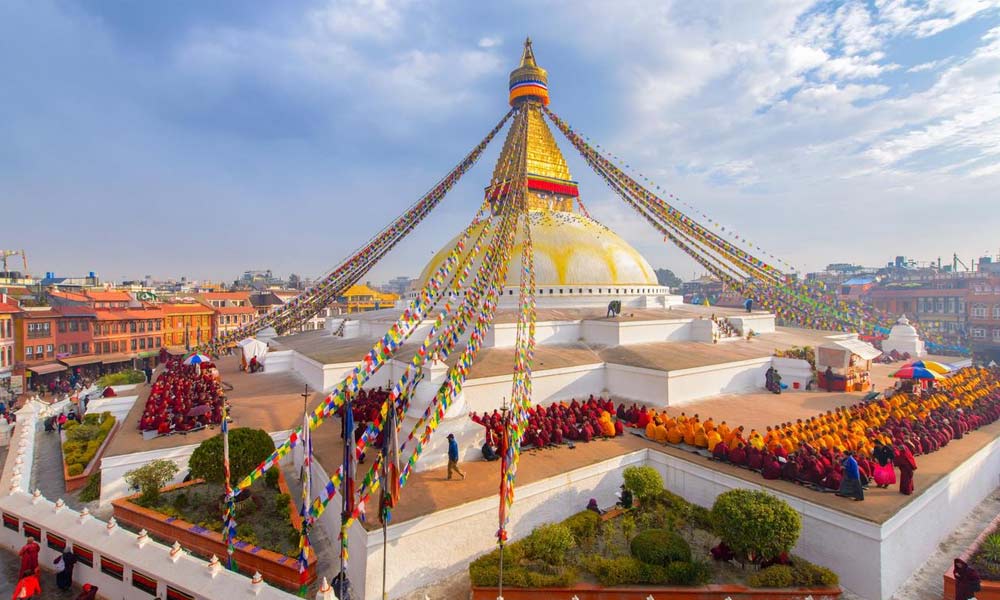 After breakfast, drive to the India–Nepal border and cross into Lumbini (approx. 4–5 hrs with border formalities)
